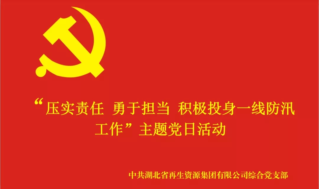 按照中共中央组织部印发的《关于在防汛救灾中充分发挥基层党组织战斗堡垒作用和广大党员先锋模范作用的通知》文件精神,2020年7月24日下午,湖北省再生资源集团综合党支部开展“压实责任 勇于担当 积极投身一线防汛工作”主题党日活动。